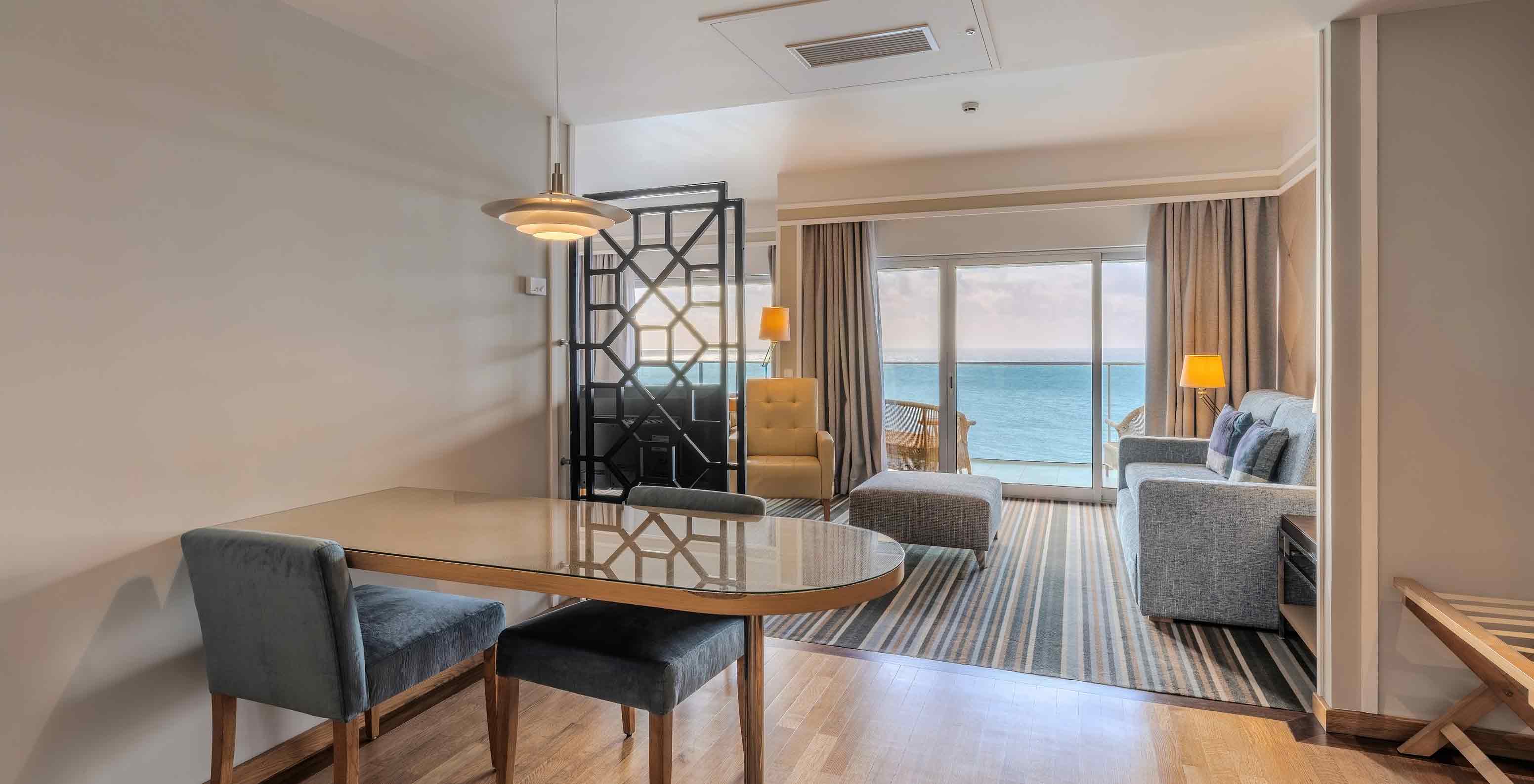 El Pestana Carlton Madeira, un hotel en el centro de Funchal frente al mar, tiene una sala de eventos con mesa y sillas