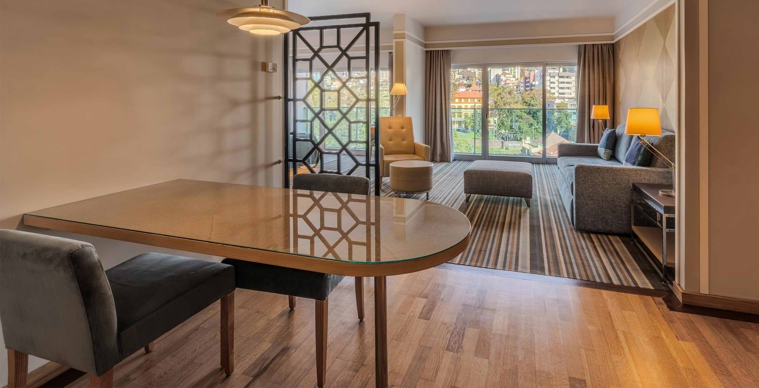 Pestana Carlton Madeira, un hotel en el centro de Funchal frente al mar, tiene una recepción amplia, con decoración elegante