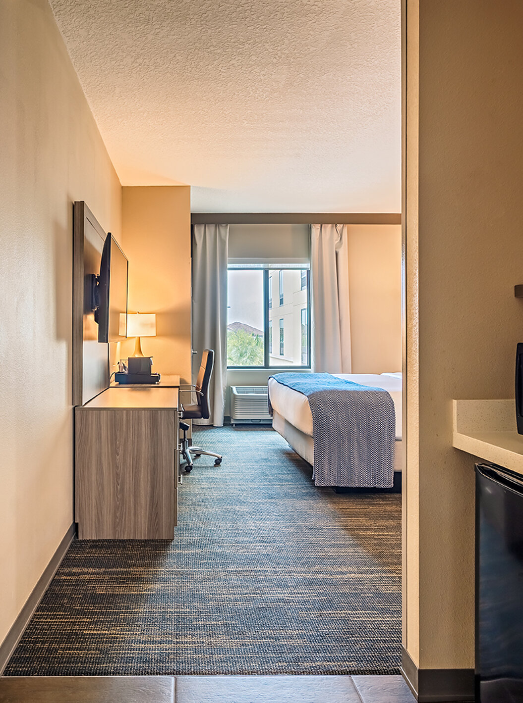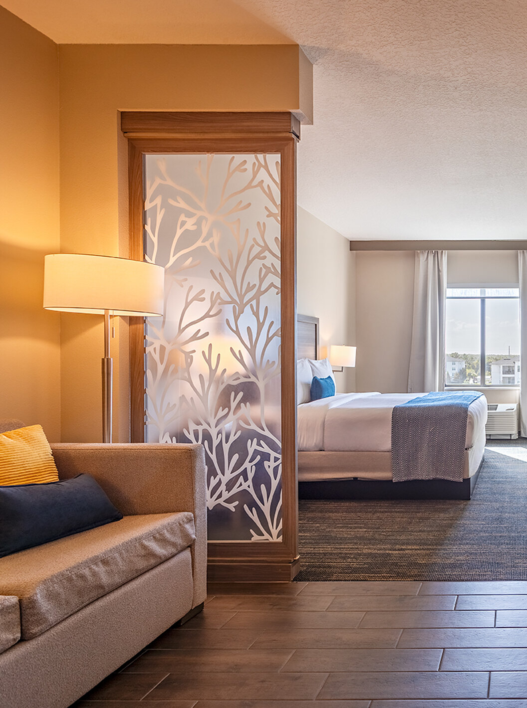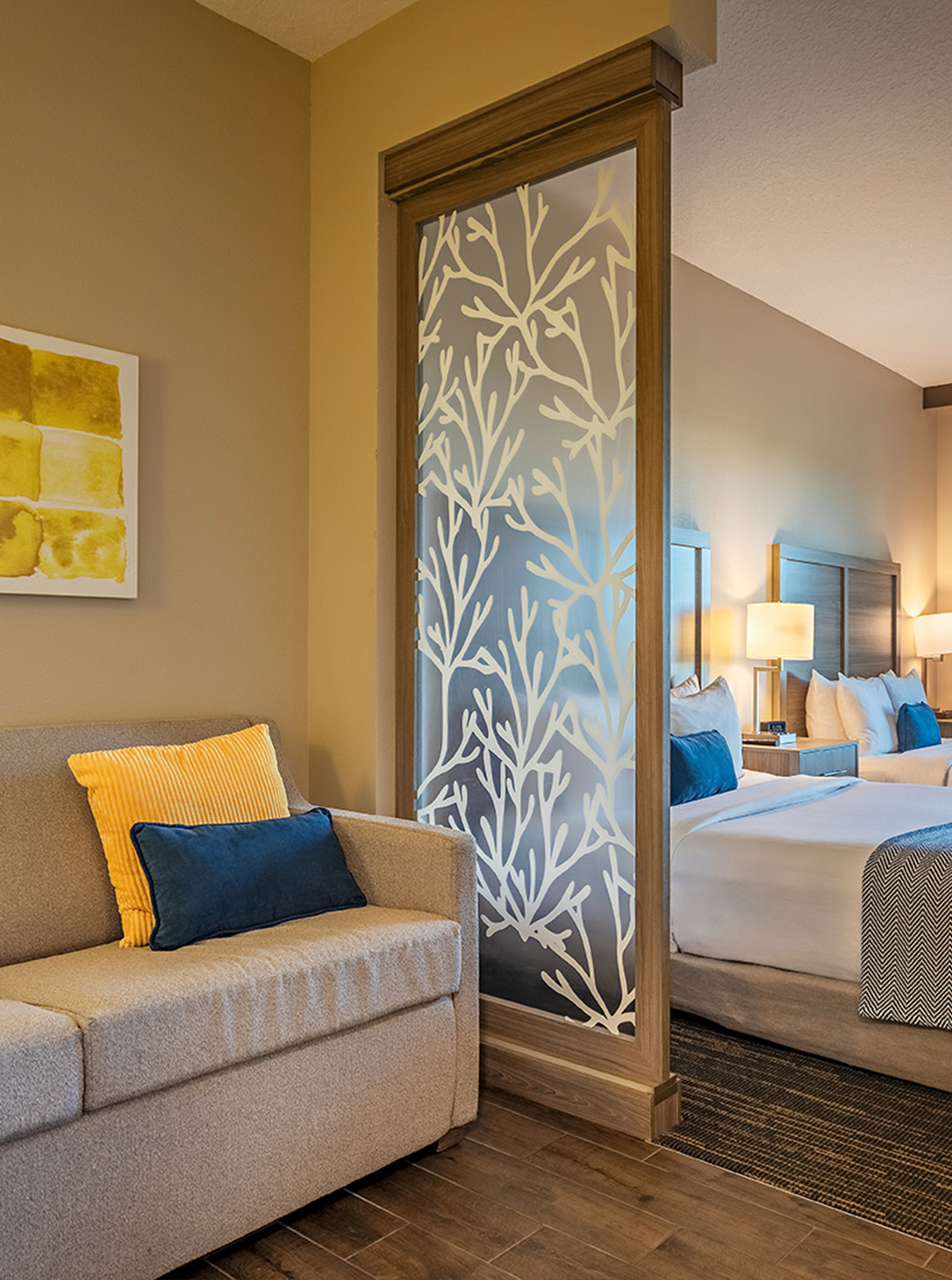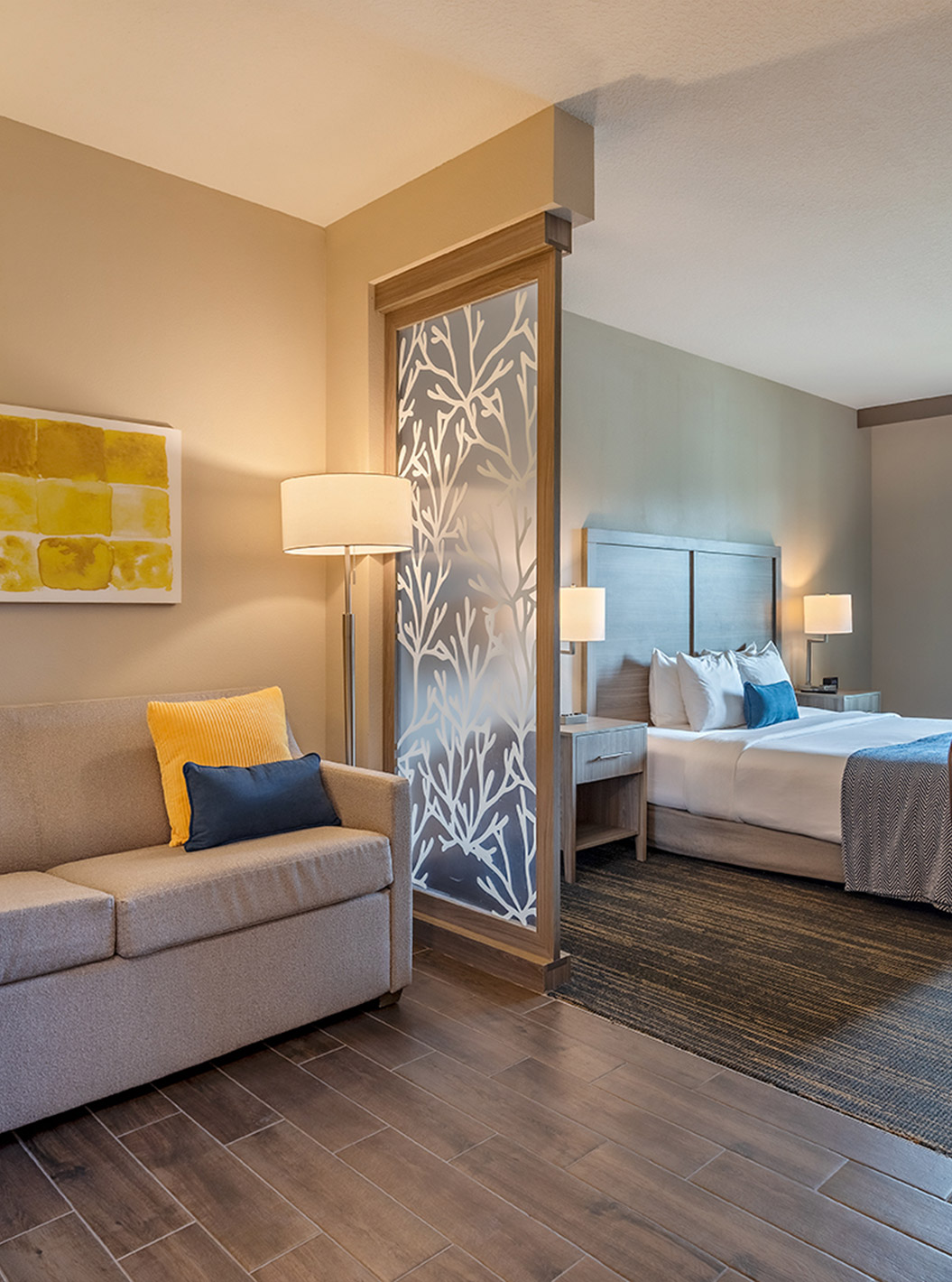 Descubra los espacios amplios y luminosos, incluyendo salas de estar, dormitorio, almacenamiento y escritorio. Suites equipadas con dos camas queen size o una cómoda cama de matrimonio king size.