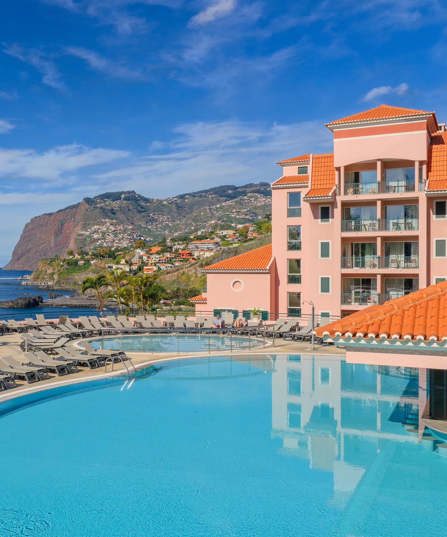 El Pestana Royal All Inclusive ofrece dos piscinas exteriores, ideales para quienes buscan relajarse y disfrutar del sol de Madeira.