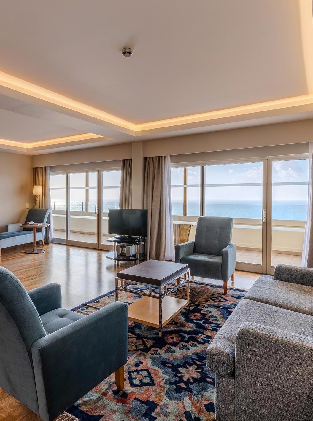 As zonas de relaxamento chamam por si, tal como o ginásio, a sala de massagens e a piscina interior, com as suas dezenas de espreguiçadeiras e vista frontal para o mar.
