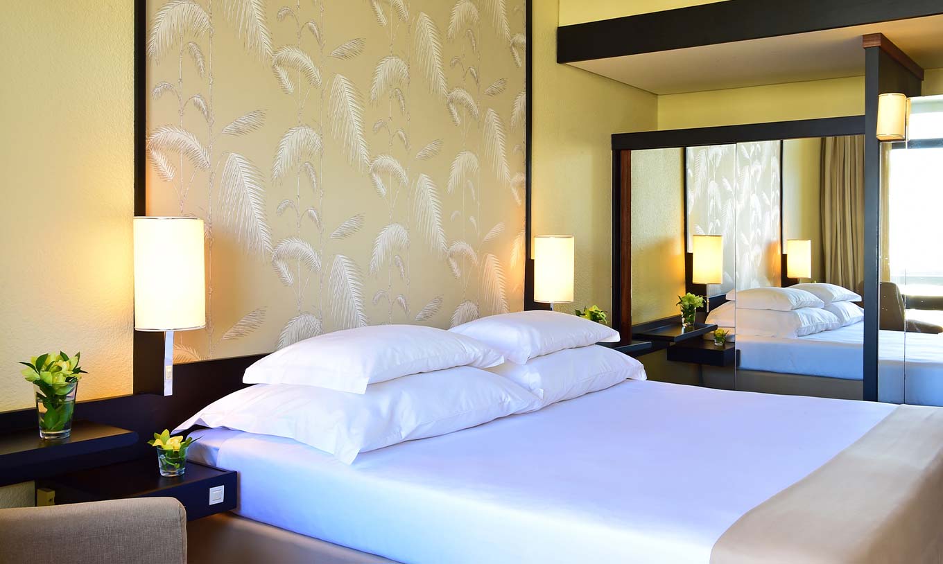 De Klassieke Kamer met Zijzeezicht van Pestana Casino Park heeft een tweepersoonsbed, bureau met lamp en balkon