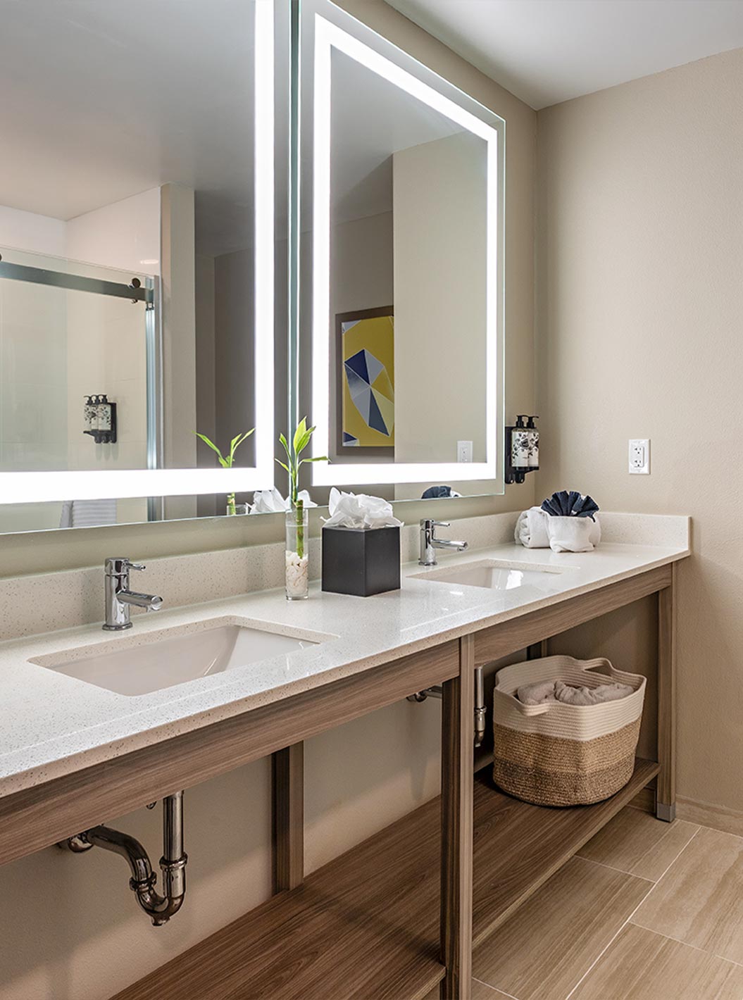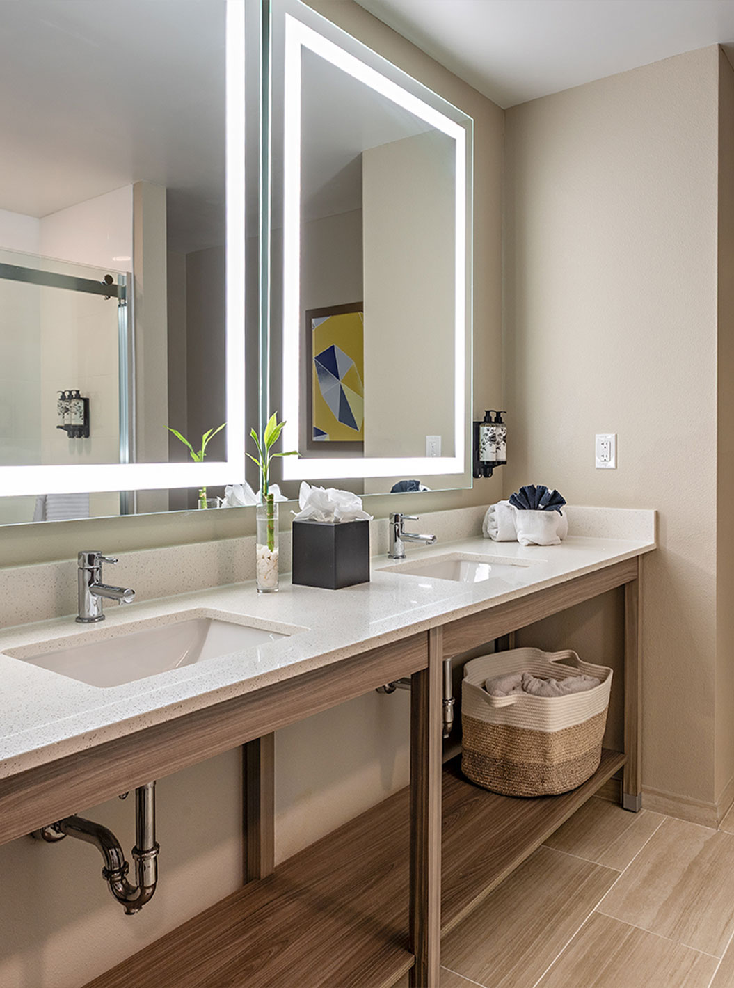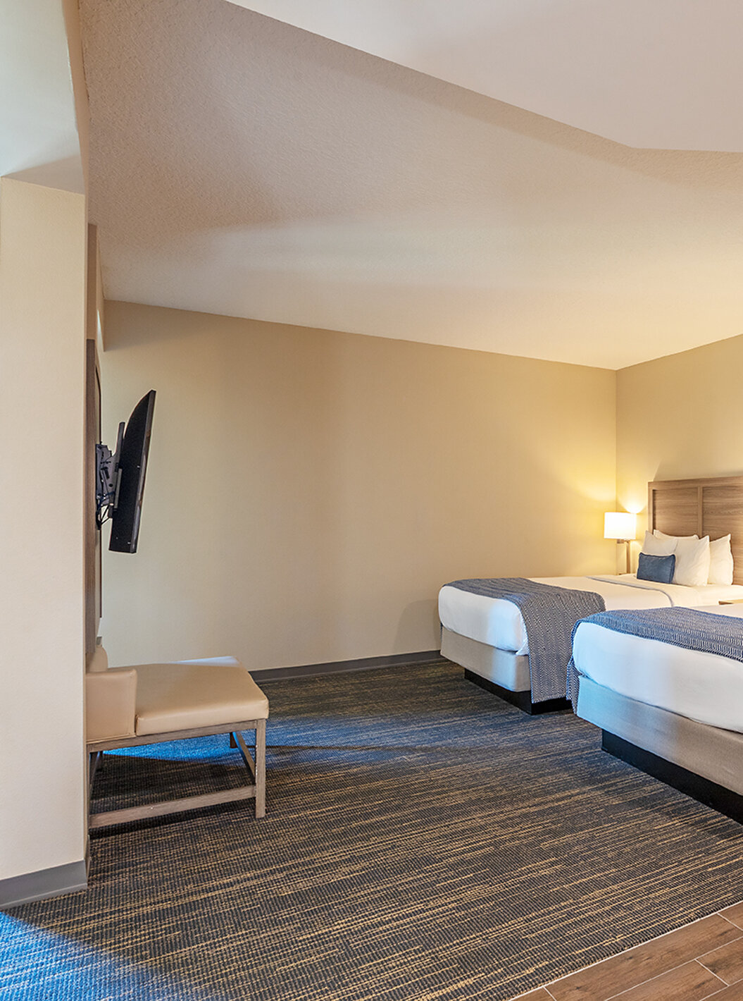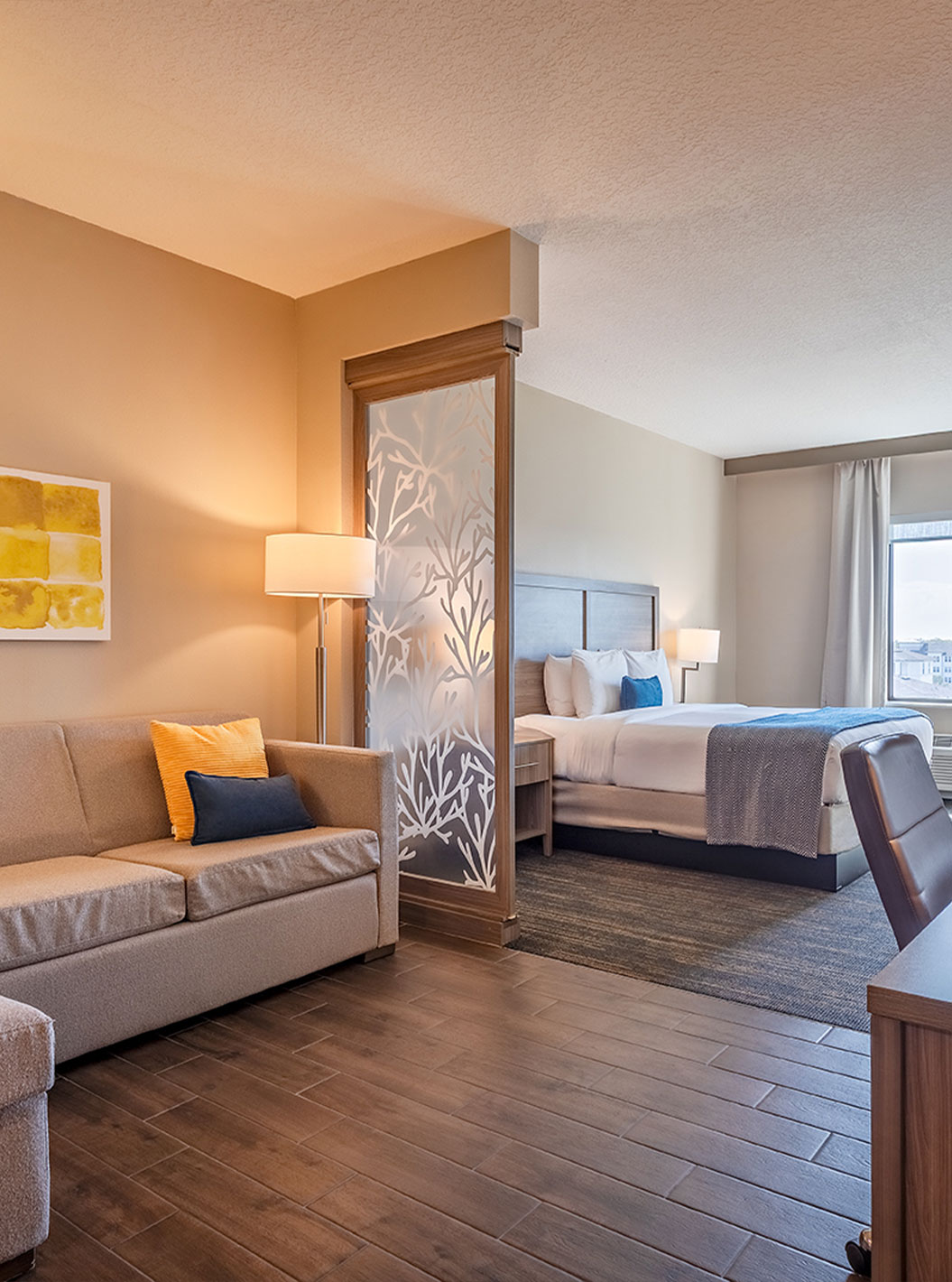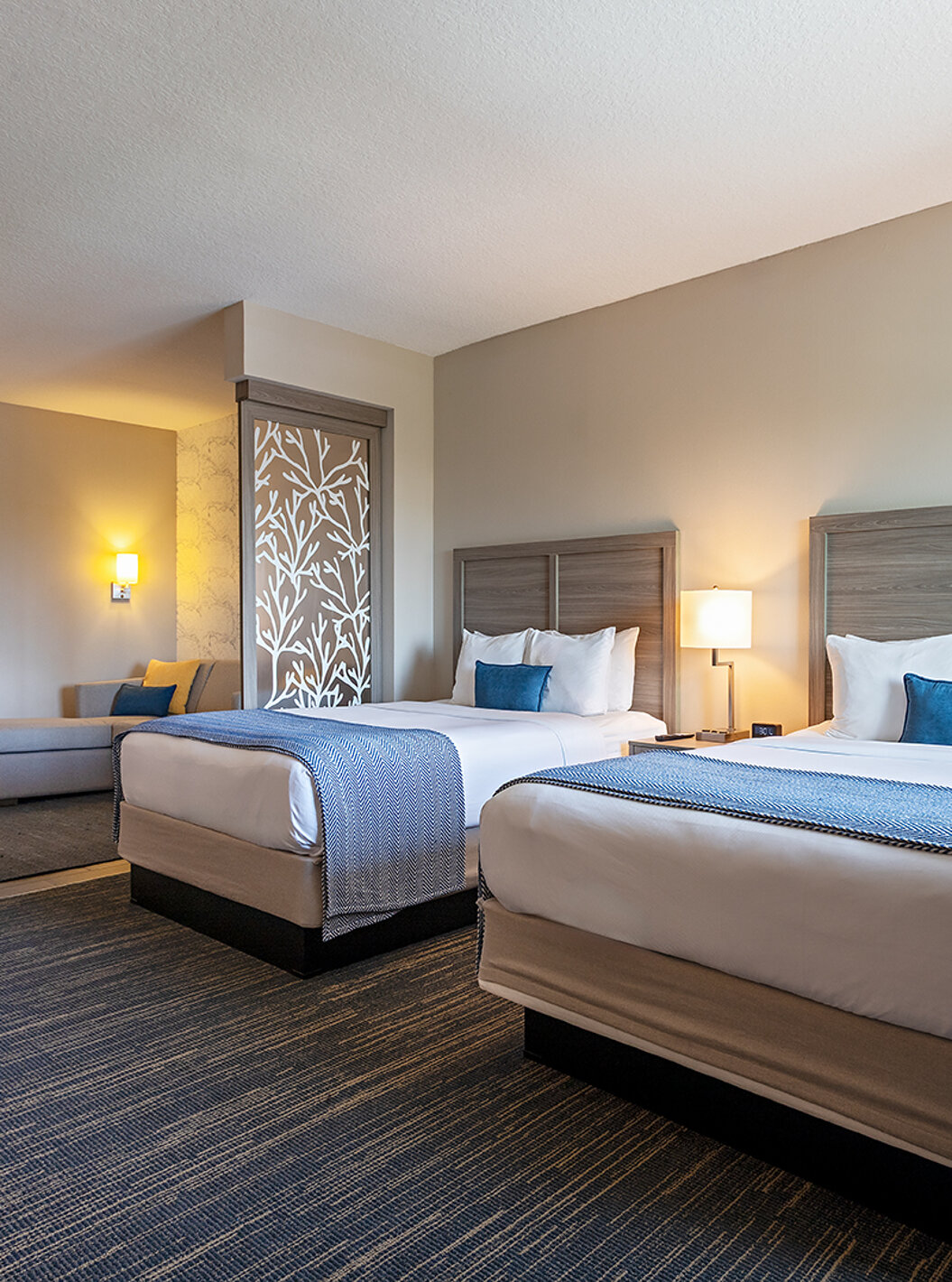 Ontdek ruime en lichte ruimtes, met plek voor wonen, slapen en opslag en een werkplek met een bureau. Suites voorzien van twee queensize bedden of een comfortabel kingsize tweepersoonsbed.