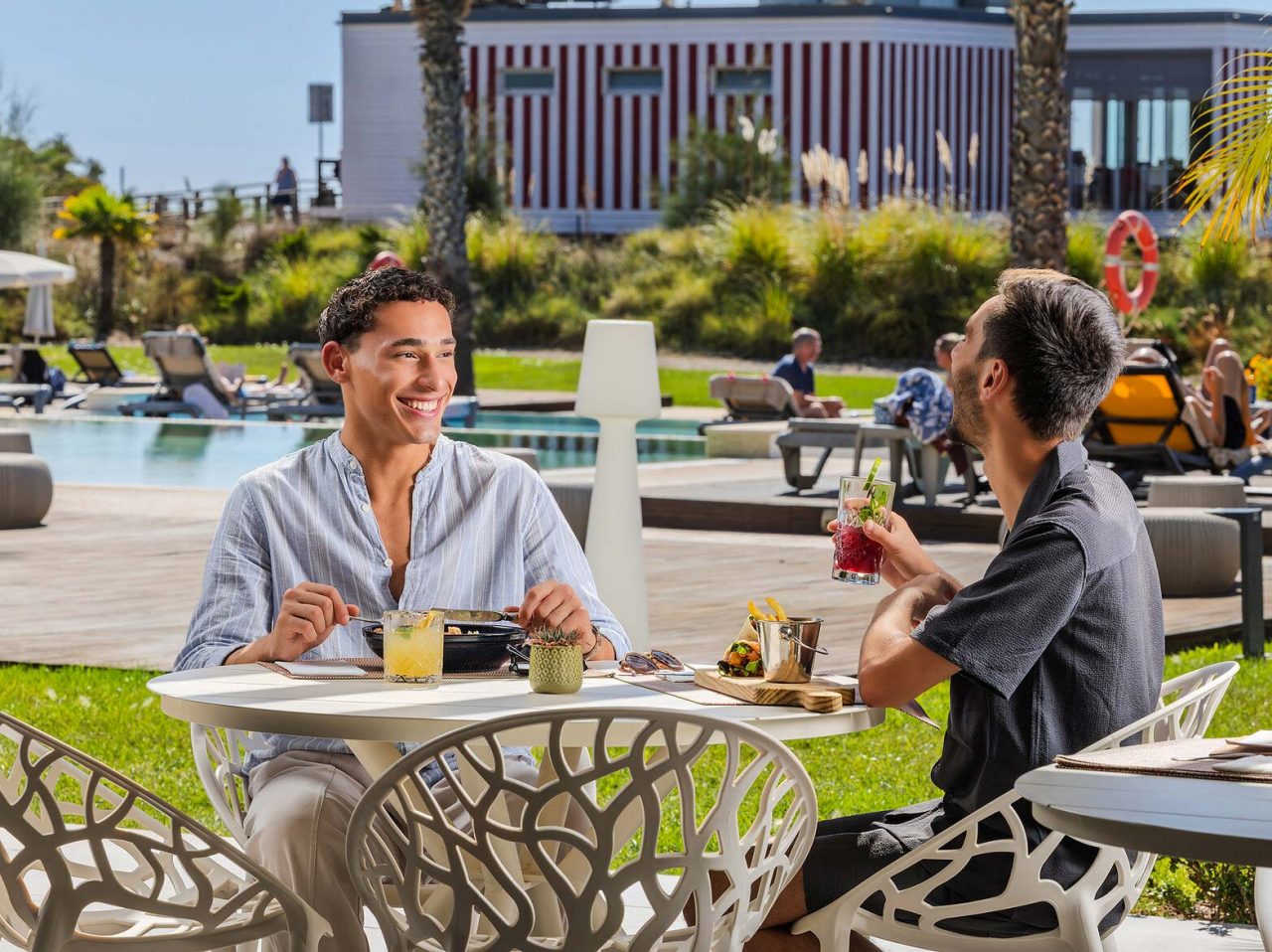 The Sunset Bar, with its relaxed atmosphere, is the perfect place to sip creative cocktails, natural juices and delicious snacks while relaxing by the pools. Both spaces provide a vibrant atmosphere and are ideal for special events and celebrations.
