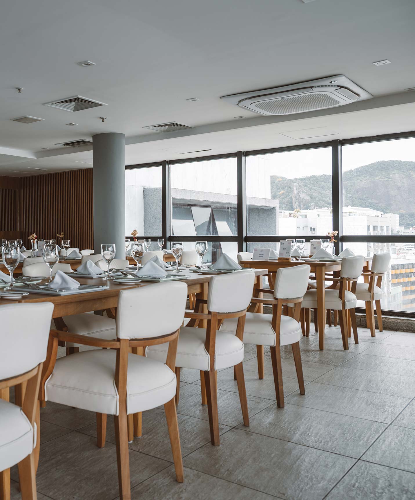For a lively evening, visit the Deck Bar or the Lobby Bar, enjoying snacks and drinks while taking in the breathtaking panoramic view of Copacabana.